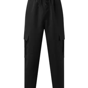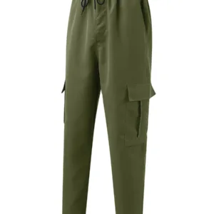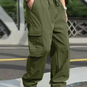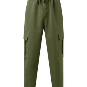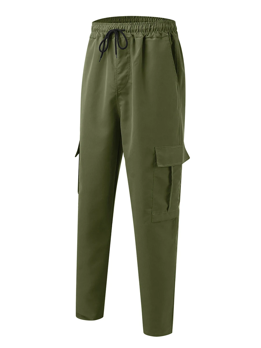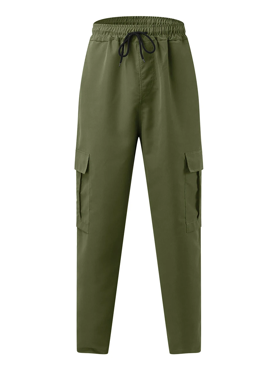 Men’s Loose Cargo Long Pants, Solid Color Drawstring Waist Straight Leg Trousers Casual Work Pants with Pockets